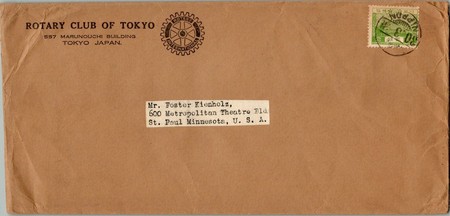 - 2s Mount Fuji c1930 Tokyo, Nippon Printed matter to St. Paul, Minn. Corner card Rotary International, Rotary Club of Tokyo. Creases. LEGAL SIZE