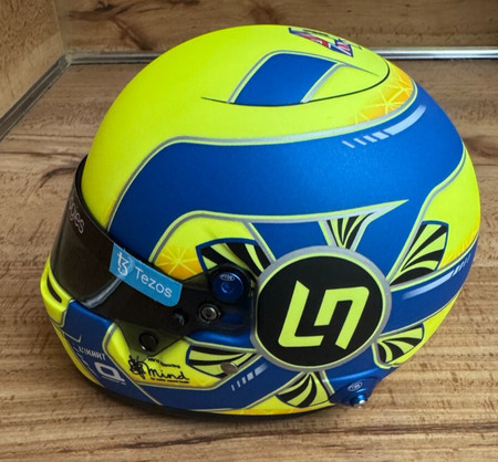 - Experience the thrill of Formula 1 with the 2022 Lando Norris McLaren Mini Helmet, a 1:2 scale replica of the iconic racing helmet worn by the celebrated driver Lando Norris. This collectible is a true homage to the speed and style of the McLaren team, featuring vibrant multi-color design that captures the essence of the sport. Crafted for fans and collectors alike, this officially licensed product brings a piece of the racetrack into your home. Whether displayed in your office, garage, or amongst your collection, the helmet serves as a striking reminder of the adrenaline and precision of racing.