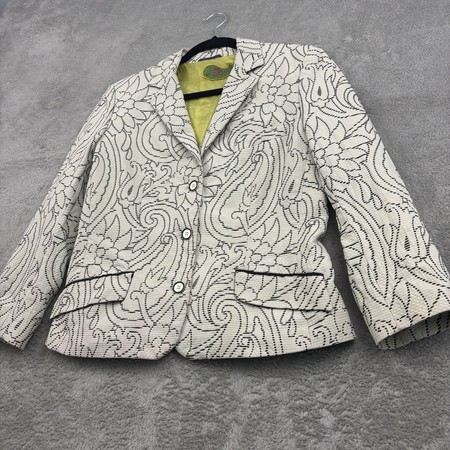 VTG Etro Milano Jacquard Blazer Jacket Womens 46 White Black Floral Artsy Church