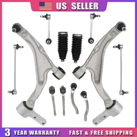 Items Included: 1x Front Lower Control Arm - Driver Side - K622037, 1x Front Lower Control Arm - Passenger Side - K621549, 2x Front Stabilizer / Sway Bar End Link - K750124, 1x Rear Stabilizer / Sway Bar End Link - Driver Side - K750750, 1x Rear Stabilizer / Sway Bar End Link - Passenger Side - K750749, 1x Front Outer Tie Rod End - Driver Side - ES800825, 1x Front Outer Tie Rod End - Passenger Side - ES800824, 2x Front Inner Tie Rod End - EV800578, 2x Rack & Pinion Tie Rod Boots