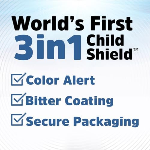 - Featuring the world's first 3-in-1 Child Shield with three lines of defense: Color Alert, a bitter coating, and secure packaging (only on select packs)