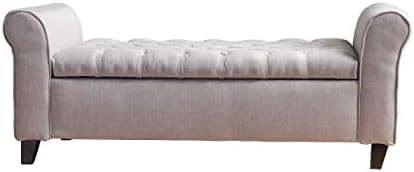 Christopher Knight Home Keiko Fabric Armed Storage Bench, Light Grey