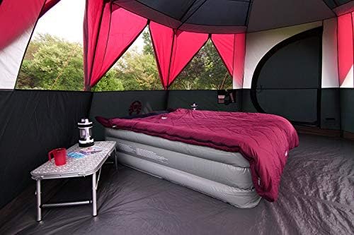 - 360 Degree view plus enhanced ventilation: Six large windows and mesh roof for maximum air circulation; two hinged doors open like a real door for easy access; full head height throughout the large eight person tent