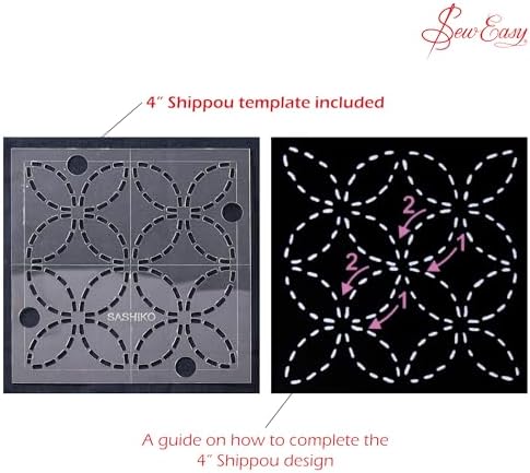 Una plantilla de 4 pulgadas para crear un diseño de los siete tesoros de Sashiko. Instrucciones claras en el embalaje.