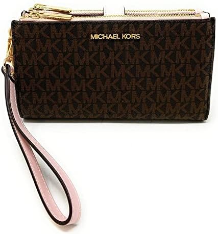 Michael Kors Jet Set Travel Double Zip Wristlet (brown softpink)