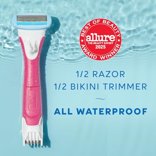 Schick Hydro Silk TrimStyle Razor with Bikini Trimmer for Women | 2-in-1 Bikini Razor for Women and Womens Trimmer for Pubic Hair, Includes 1 Waterproof Handle, 3 Refills & 1 AAA Battery