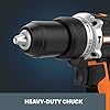 El potente taladro percutor inalámbrico Nitro de 20 V Worx de ½» con motor sin escobillas tiene la flexibilidad de realizar proyectos de bricolaje avanzados, pero con 32.000 BPM también está diseñado para trabajos profesionales, como clavar sujetadores a través de concreto o mampostería, o realizar tareas de conducción repetitivas como construir una plataforma. Su engranaje de 2 velocidades le permite ajustar los golpes por minuto de 0 a 9600 bpm o de 0 a 32 000 bpm. (0-600, 0-2000 RPM en modo de taladrado estándar). Y con el embrague de par 20+1+1, puede encontrar con precisión el ajuste correcto, hasta 531 in-lb, de modo que cada trabajo individual se realice con la cantidad correcta de par. Este martillo perforador con motor sin escobillas tiene una capacidad de taladrado de 1-3/4» para madera y ½» para acero. El portabrocas totalmente metálico de ½» de alta resistencia no requiere una llave hexagonal para cambiar las brocas y su construcción totalmente metálica elimina el deslizamiento de la broca. A pesar de toda esa potencia, solo pesa 3.4 lb, lo que es sustancialmente más ligero que los martillos perforadores estándar, por lo que puedes sostenerlo sobre tu cabeza cómodamente y trabajar durante horas con menos fatiga. Además, la nueva e innovadora GripZone tiene un material de microtextura en la empuñadura para un mejor control y una mayor comodidad. Ya sea que necesite un destornillador de alto impacto por minuto (IPM) para dar tantos golpes potentes como sea posible, de modo que pueda hundir tornillos, pernos y anclajes, o un taladro/atornillador resistente para tareas domésticas y proyectos de bricolaje avanzados, el martillo perforador inalámbrico Nitro de ½» con motor sin escobillas de 20 V lo tiene cubierto.
