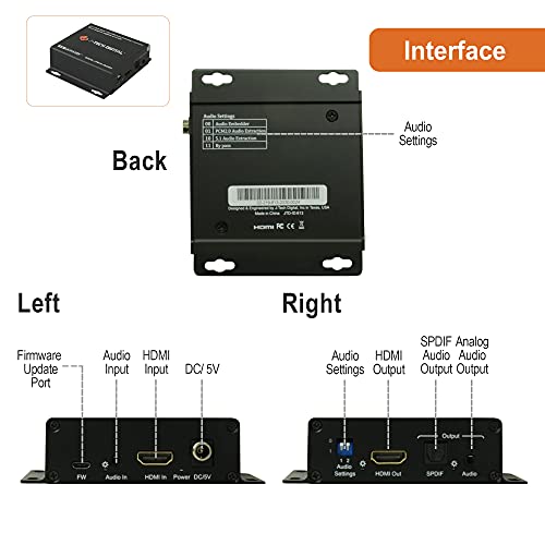 - ✅ 𝐇𝐃𝐌𝐈 𝐀𝐔𝐃𝐈𝐎 𝐄𝐗𝐓𝐑𝐀𝐂𝐓𝐎𝐑 / 𝐃𝐄-𝐄𝐌𝐁𝐄𝐃𝐃𝐄𝐑 – Use the HDMI audio extractor to de-embed digital audio signals from your HDMI 2.0 source device. Convert the extracted HDMI audio signal into an analog stereo (3.5mm) or digital optical (SPDIF) format for ultimate flexibility.