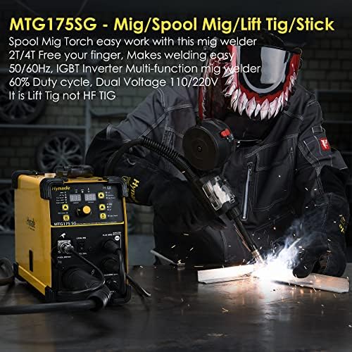 Soldadora Mig Tig MMA, Spool Mig Lift Tig Stick Máquina de soldadura multifunción MTG175 SG, Soldadora de doble voltaje 110/220V Gas/sin gas Mig Tig Stick (MTG175 SG)