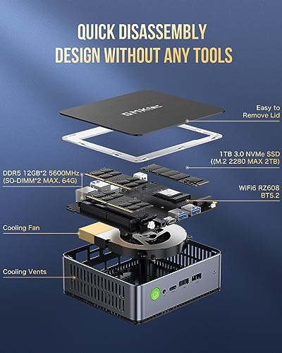GMKtec Mini PC Intel Core i7 12650H (4.7GHz) Business Office Mini Computers Desktop Preinstalled Windows 11 Pro 24GB DDR5 Dual Channel 1TB Hard Drive SSD 4K, USB 4.0, WiFi 6, BT 5.2, Ethernet RJ45 LAN