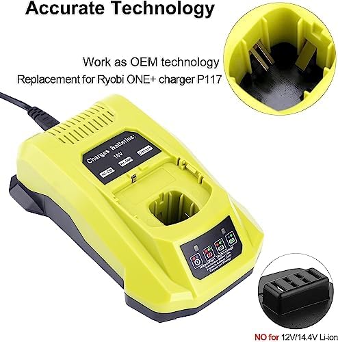 18-Volt P117 Rapid Charger Replace for Ryobi 12V-18V Battery One+ Lithium-Ion/NiCad/NiMh Battery P102 P108 P189 P197 P103 P105 P107 P190 P191 PBP002 PBP005