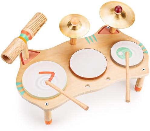 - 7-IN-1 MUSIC ADVENTURE: This 7-in-1 toddler drum set invites your child into a world of rhythm and curiosity. With 3 lively drums, 2 gentle cymbals, a wooden tone block, and drumsticks, it's designed for ages 1–3 to explore sound and movement. Each beat builds focus, laughter, and creativity, turning playtime into joyful discovery shared by the whole family.
