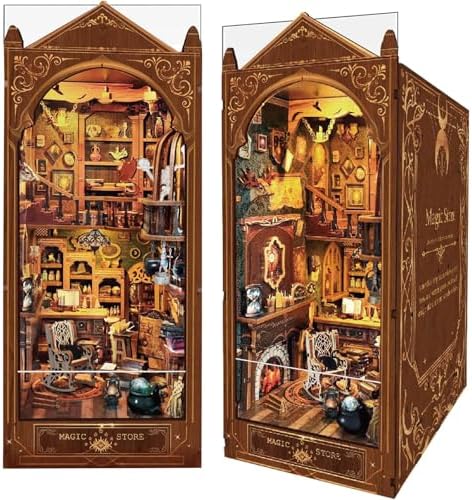 Book Nook Kit, Magic Store Dollhouse Booknook Bookshelf Insert Decor Alley DIY Miniature House Kit with Led Light Crafts for Adults and Teens to Build-Creativity Model Gift