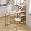Quick Overview:Indulge in Glamour with Our Stylish Bar Table Set! Elevate your home with this chic ensemble featuring a spacious tabletop, perfect for intimate meals and drinks for two. The waterproof surface ensures easy cleaning, while adjustable footpads maintain balance on uneven floors. The sturdy metal frame guarantees a stable structure for both the table and stools. Enjoy the convenience of an extra cup holder, and amplify your storage with an extra-large 3-tier open shelf and wine rack for tableware, wine, and snacks. Create the perfect, cozy space for delightful meals and conversations with your loved ones. The package includes detailed instructions and necessary accessories for a hassle-free assembly experience. Glamour, convenience, and functionality – all in one exquisite bar table set! Features of Bar Table Set:1.Spacious table top is large enough to accommodate meals and drinks for two.2.Waterproof surface is very easy to clean and maintain.3.Sturdy metal frame ensures stable structure of table and stools.4.Extra cup holder allows you to reach for your wine glasses.5.Extra large 3-tier open shelves and wine rack for tableware, wine and snacks.6.Package comes with detailed instruction and necessary accessories for easy assembly. Specifications:Color: Brown Material: MDF, Metal Overall Dimensions of Table: 48” x 15.35” x 48” (L x W x H) Overall Dimensions of Stool: 15” x 15” x 23.6” (L x W x H) Tabletop Weight Limit: 220 lbs Max Weight Limit of Table: 400 lbs Max Weight Limit of Every Shelf:44lbs Stool Weight Limit: 220 lbs Net Weight: 51lbs Package Includes: 1 X Bar Table 2 X Bar Stools 1 X Instruction