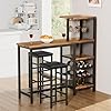VECELO Bar Table and Chairs Set for 2, 3-Piece Dining Set with Storage Shelves, Cup Holder & Wine Rack, PU Leather Cushion Stools, for Kitchen Small Space, Brown