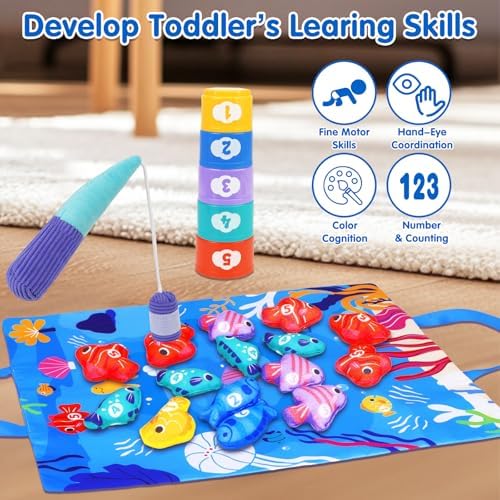 - Play to Learn: Catch fish of various colors, count your catches, and sort them by color or number. Early Learning toys allow children to master early math, color awareness, matching, counting and sequencing, build fine motor skills in a playful way. Learn and grow through play, and stimulate toddler's interest in learning! It's must-have preschool gifts for one year old boy girl toys