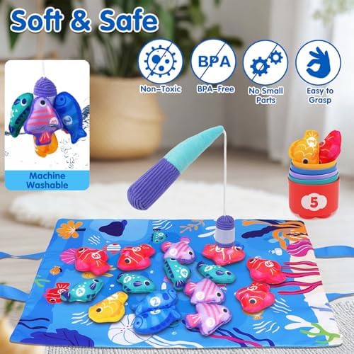 - Montessori Fishing Toy Set: You will receive a fishing pole, 15 pcs cloth fish, 5 pcs stackable fish buckets, and a play mat that doubles as a storage bag. As a baby toys 12-18 months to explore and try, it awakens the curiosity of the children, helps them explore, experiment and discover. Ideal toddler toys for 1 2 3 year old boys and girls
