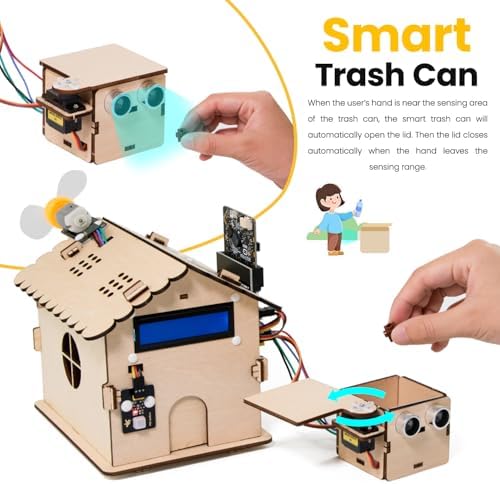 - Smart and Sound-Controlled Features: Enjoy a futuristic experience with sound-controlled lights, password-protected doors, temperature/humidity monitoring, earthquake alerts, motion detection, and an automatic trash bin—all in one kit!