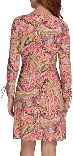 Tommy Hilfiger Women's Long Sleeve Round Neck Shift Dress, Sherbet Multi, 12