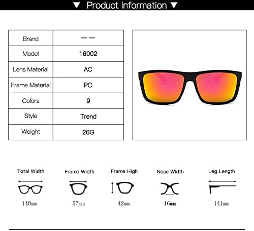 Lenses Material:AcrylicDepartment Name:AdultGender:MENFrame Material:PlasticLenses Optical Attribute:MIRRORStyle:Item Type:EyewearEyewear Type:SunglassesLens Height:42 mmLens Width:57 mmSuitable Driving:day driving, night drivingOccasion:Sports,driving,fishing,VacationGender:Men/Male/Youth Male【VINTAGE DESIGN】Not only is the simple and compact design makes thick frame looks very delicately,but also the rectangle shape frame makes the overall look of the sunglasses more retro.【QUALITY】Lightweight frame, thick but slim , not easily deformed, long wear does not press nose give you a unique and comfortable wearing experience.【UV400 PROTECTION】UV400 eye protection effectively filters & blocks glares.Keep your eyes healthy and gives you a natural & clear vision, durable & shatterproof.【SUITABLE】Perfect choice for outdoor activities such as walking, driving, shopping, travelling, taking photos, and is suitable as high accessory and daily wear all year round.【UV PROTECTION LENS】sunglasses with UV blocking lens can filter sunlight reflected glare and protect your eyes from harmful UVA,UVB & UVC Rays.