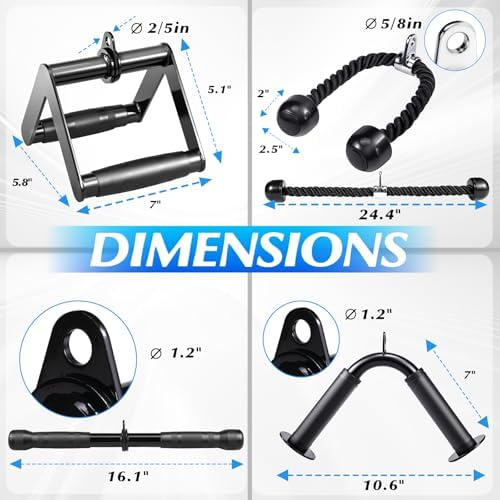 - ExerciFeatures 10 essential accessories: Triceps Rope, V-Handle, Straight Bar, D-Handles, Ankle Straps for Women, Wrist Straps, Triangle Handle, Hand Gripper, Carabiners & Storage Bag. Eliminate the need for multiple purchasesse Machine Attachments