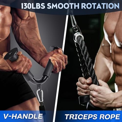 - Unlock 50+ exercises! Use the tricep rope for pushdowns, straight bar for bicep curls, V-bar for lat pulldowns, or ankle straps for lower body toning. Ideal for home gyms & commercial setups