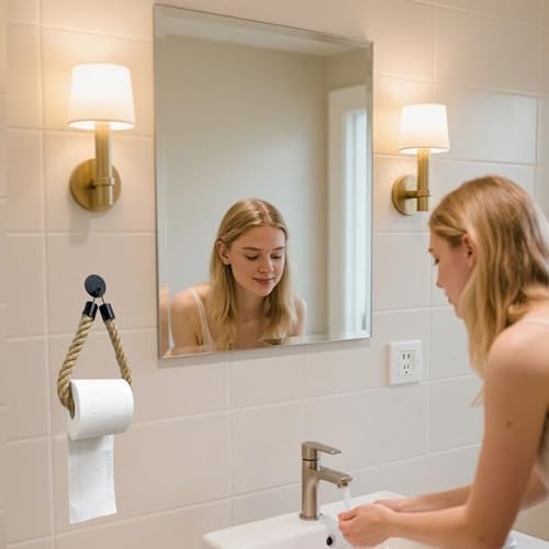 Nautical Rope Toilet Paper Holder,Hemp Rope Towel Holder, Creative Retro Wall-Mounted Towel Rack Toilet Paper for Home Decor Kitchen Toilet Bathroom Accessories with Screw