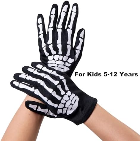 Add a spine-chilling touch to your Halloween festivities with this versatile 2-pair set of skeleton gloves from Yilistore. The set includes one pair sized for adults and one for kids, making it perfect for family costume coordination. Each pair features a striking black base with detailed white bone patterns that create a realistic skeletal hand design. The gloves are crafted to showcase anatomically-placed bones, from the delicate finger bones to the larger palm structures, creating an eerie yet fascinating effect. These accessories are ideal for completing various Halloween costumes, from classic skeletons to grim reapers or any spooky character. The stretchy material ensures a comfortable fit, while the bold contrast between the black background and white bone pattern ensures high visibility in various lighting conditions. Perfect for Halloween parties, trick-or-treating, costume contests, or haunted house events, these gloves add an extra layer of authenticity to any scary ensemble.