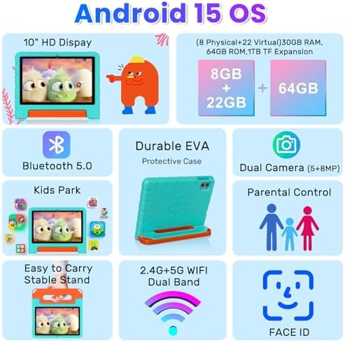 - 🚀【Smart Performance with Android 15 & Gemini AI 2.0】 Powered by the latest Android 15 system (boasting enhanced security/privacy and ad elimination) and a 2.0GHz high performance processor, this tablet handles multi-tasking and large apps smoothly—Kids’ study companion, parents’ entertainment hub! Enhanced by Gemini AI 2.0, it acts as a personalized learning companion for kids—assisting with homework, explaining concepts, and adapting to boys and girls learning pace.