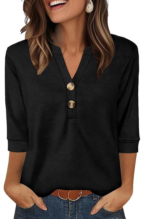 Womens Tops 3/4 Sleeve Henley Shirts for Women Fall Fashion ...