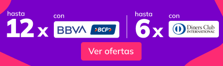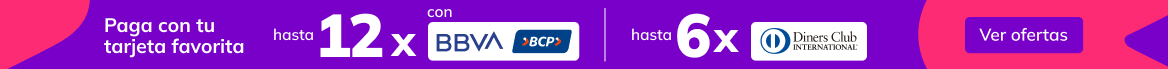 Hasta 12 cuotas sin intereses con BCP y BBVA | 6 x con Diners