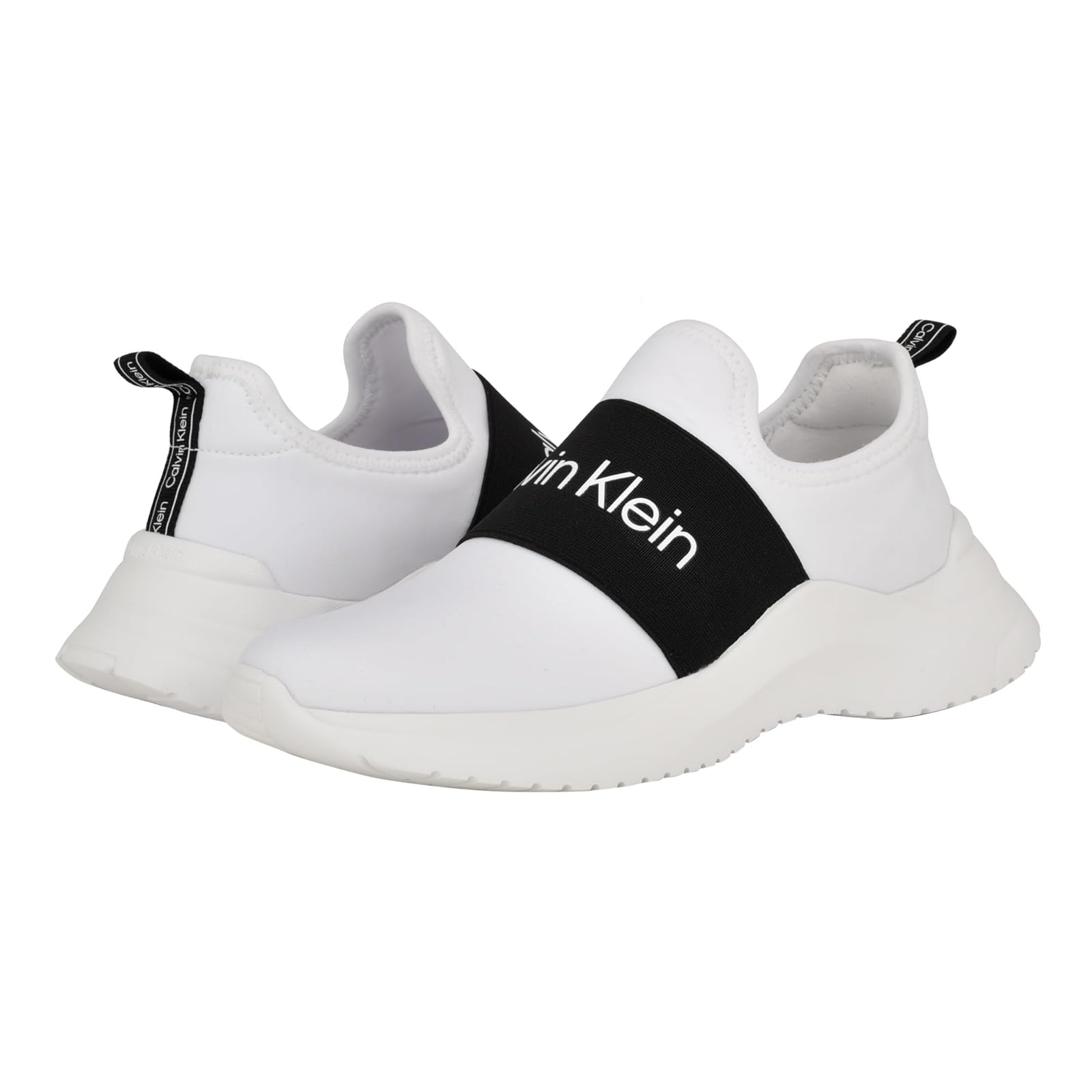 The Calvin Klein® Uzza sneaker will have you relaxing with its soft fabric upper and slip-on design for a comfy and custom fit. Order half a size larger than normal for wide feet; normal size for regular or narrow feet.