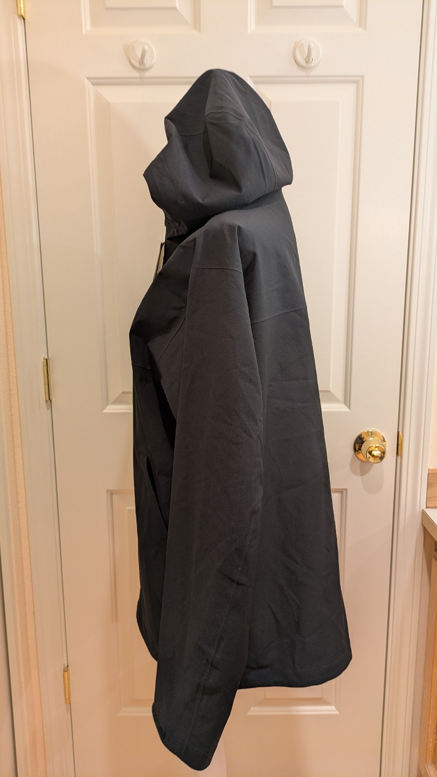 Uniqlo Blocktech Parka. There are no holes, tears, stains, or blemishes of any kind that I can find. • 3D cut to provide extra comfort around the shoulders. • Adjustable hood. Color: Black. Weight: 14.2 oz.