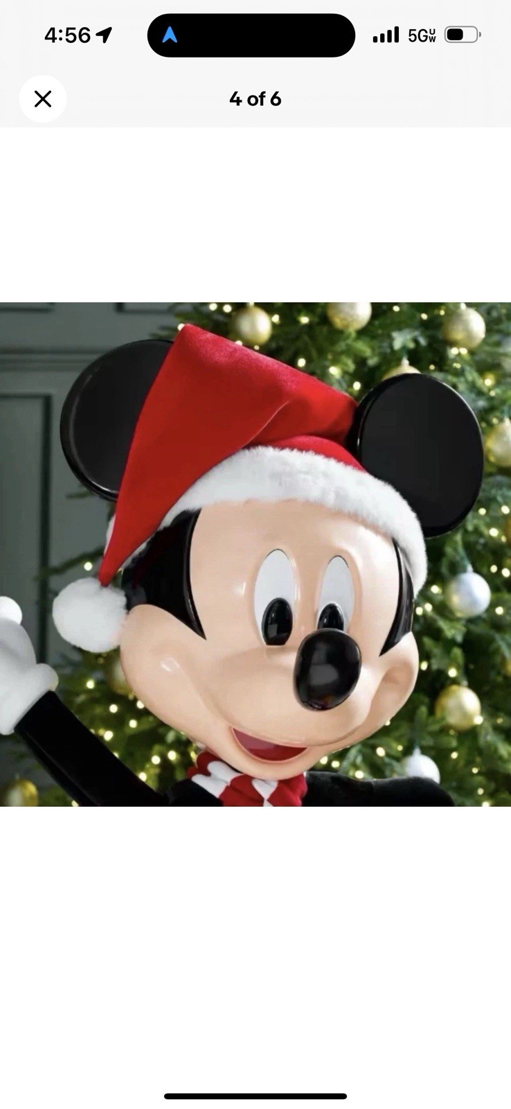 The Disney 4 ft Animated Holiday Mickey Mouse is a Christmas animatronic from Home Depot, featuring the beloved character Mickey Mouse from the Disney franchise. This collectible item brings joy and magic to holiday celebrations, with its animated movements and iconic Mickey Mouse design. Perfect for Disney fans and collectors alike, this contemporary Disneyana piece adds a touch of whimsy and fun to the festive season.