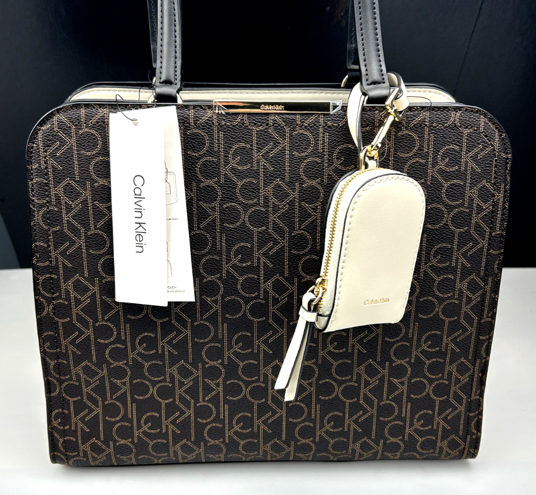 Calvin Klein Satchel Handbag w/Coin Pouch 2 IN 1 Brown Khaki Logo $228 NEW