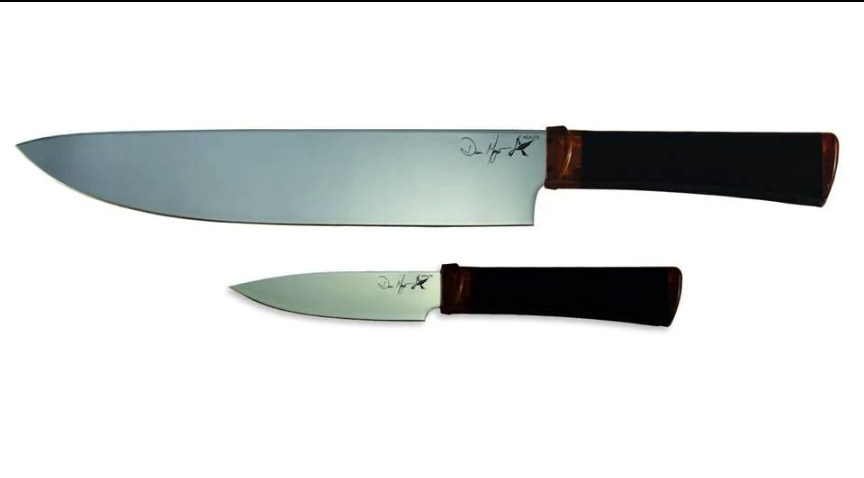 Made in the U.S.A., this Agilite Combo Knife Set pocket knife is made of 14C28N Stainless Steel and Amber Polycarbonate and Black VersaFlex Handle. This Agilite� Series Ontario Knives 2570 is 15 inches. This 2-knife set includes a Chef's knife and a Paring knife.