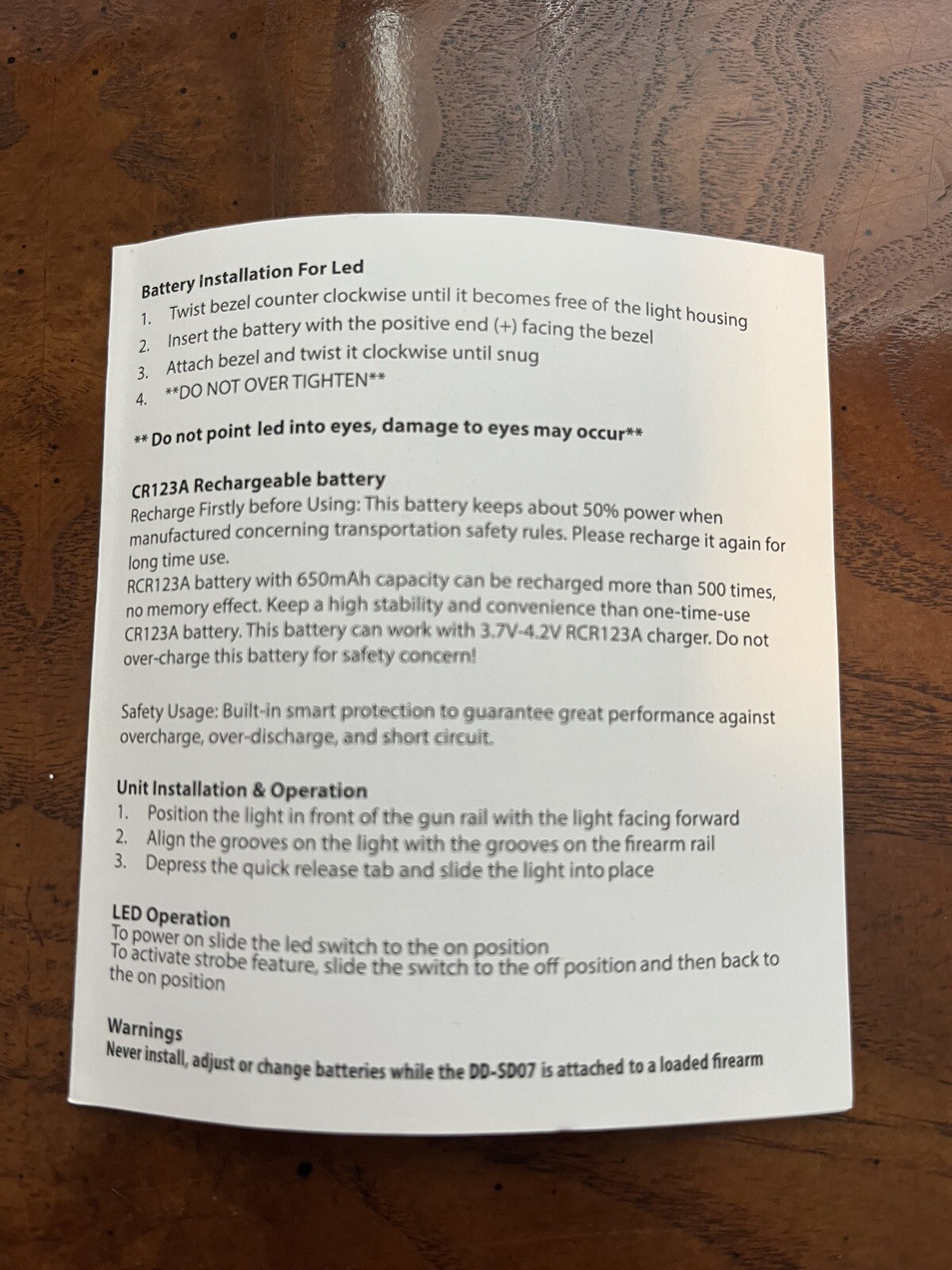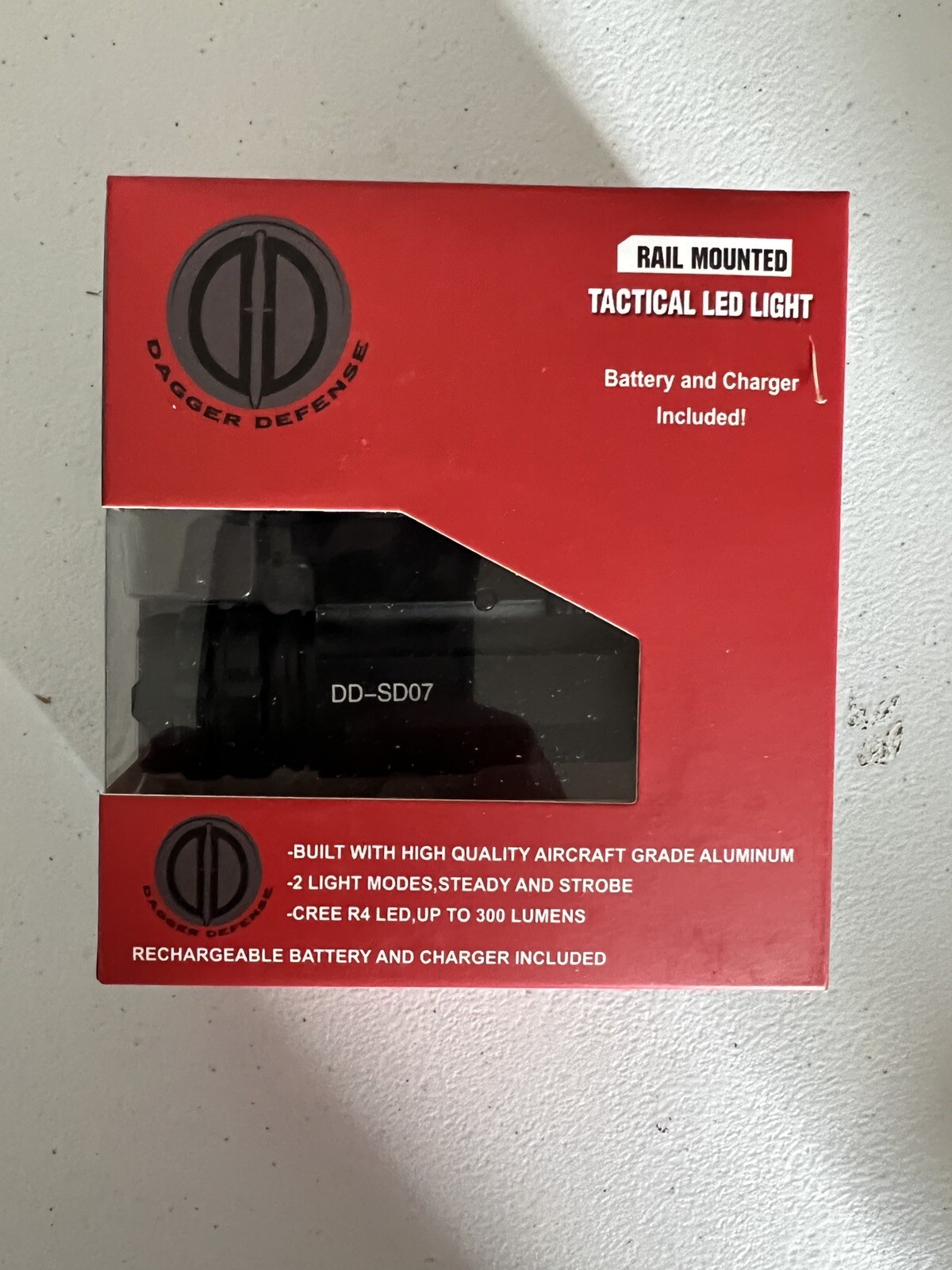Dagger Defense Tactical Pistol/ Rifle LED rechargeable rail mount flashlight