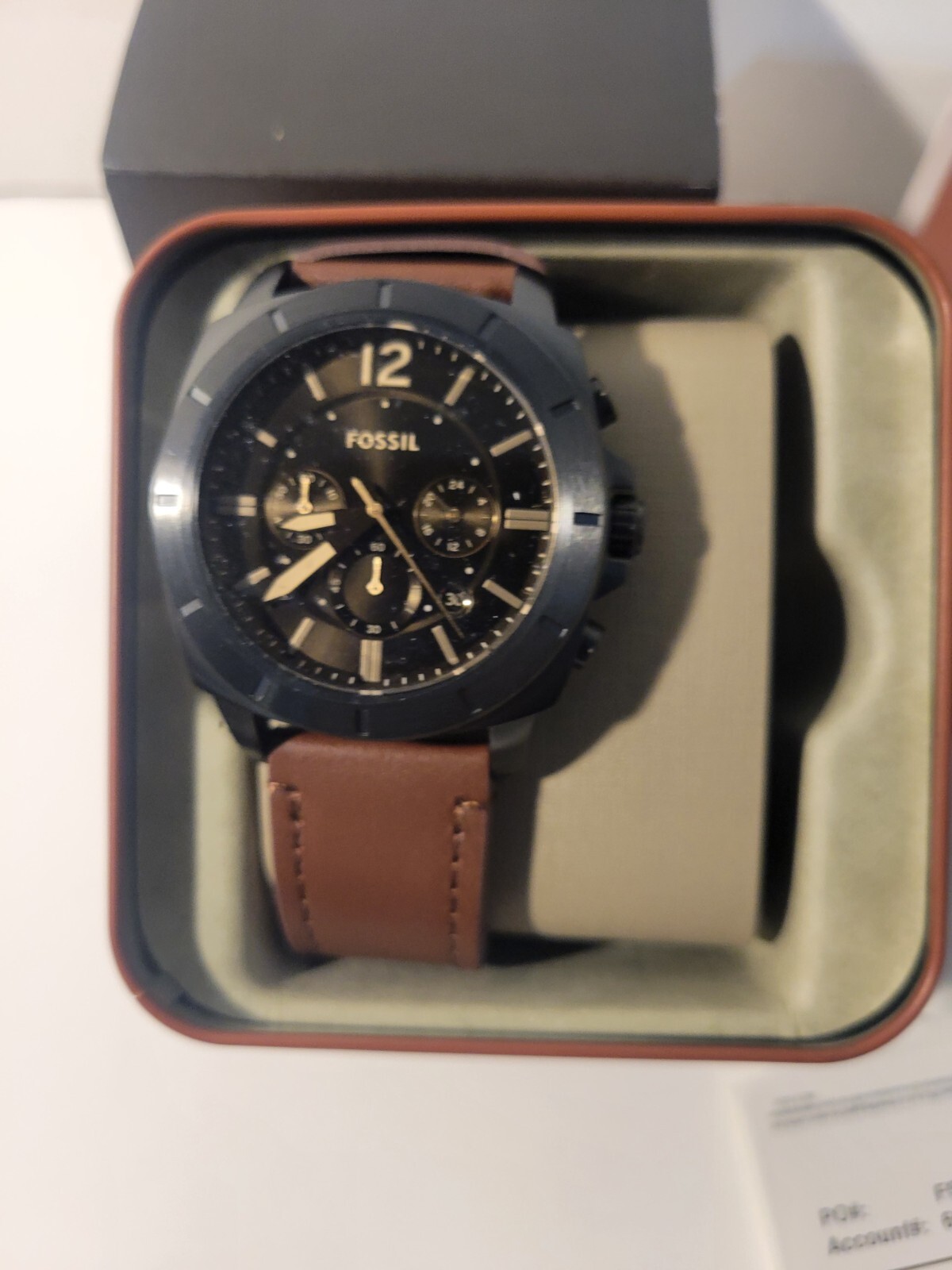 FOSSIL Privateer Mens Chronograph Watch, Black Dial, Brown Leather Strap BQ2820