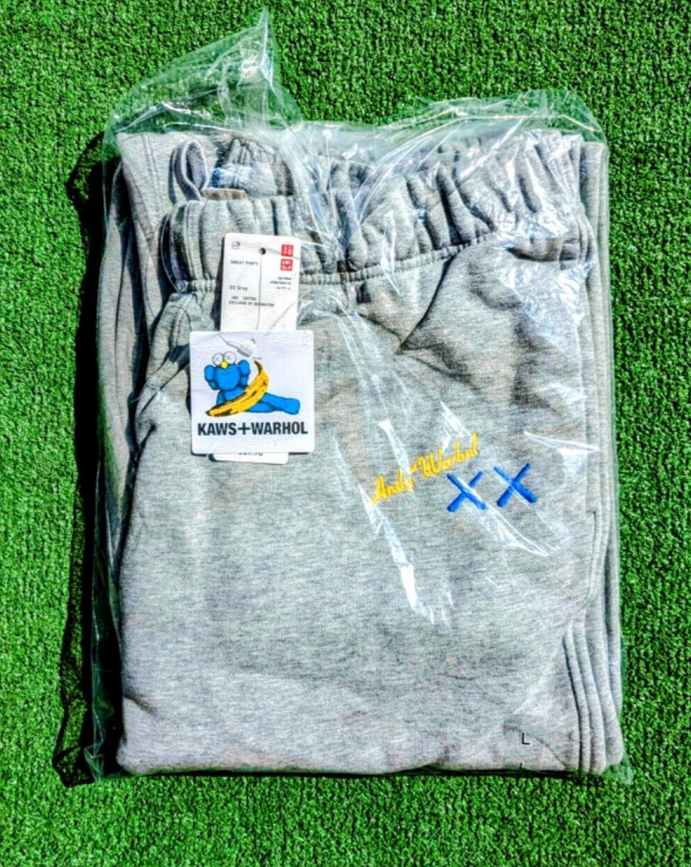 KAWS Companion + Andy Warhol Banana Art Uniqlo Gray Sweatpants Unisex Large NWT