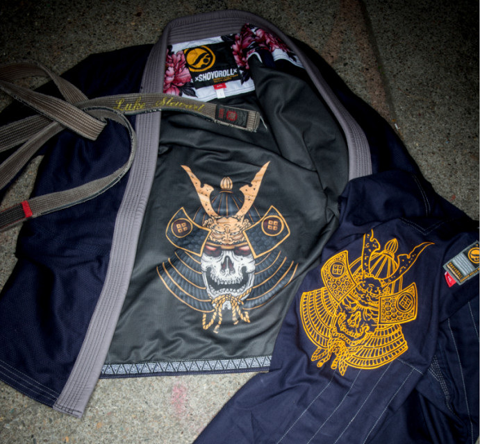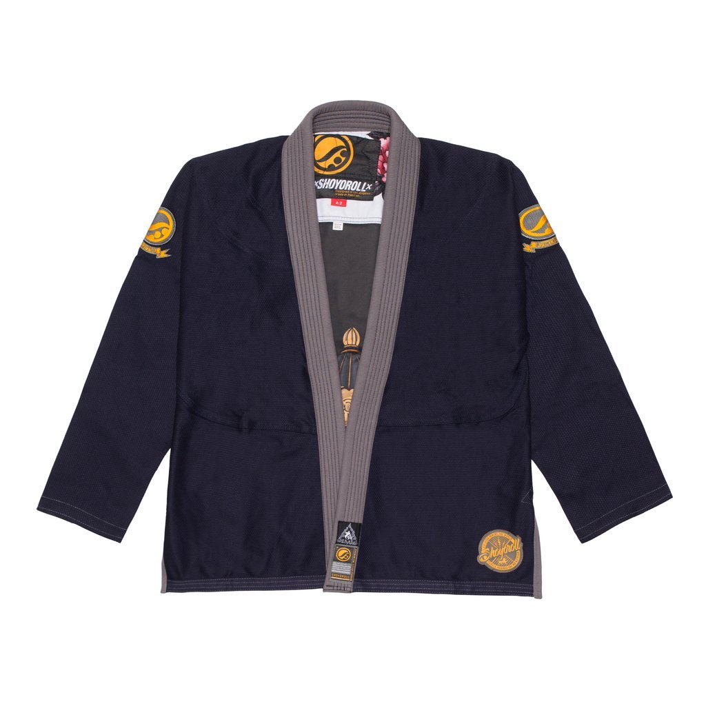 Batch #33 is our second project that was designed by Luke Stewart of 7th Son Tattoo in San Francisco. Luke's personal style of art is featured throughout this kimono. Color: Navy. - 6 point loop system.