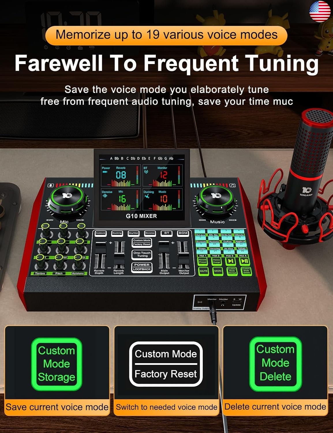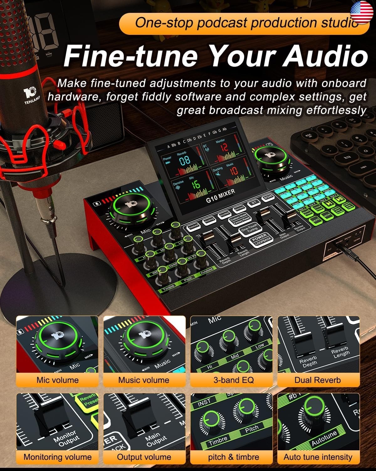 Ideal for podcast recording, streaming, voice-over, and content creation. G10 DJ Audio Mixer ?. About this item. It can save your different voice modes, no need to set the sound again. A total of 19 voice modes can be saved for different needs.