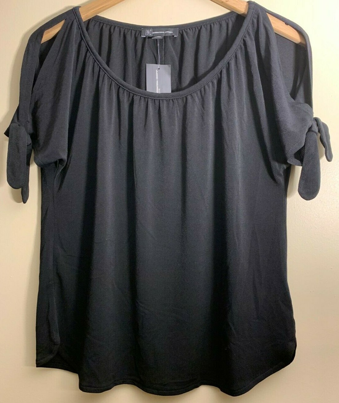 Womens Top Size Petite Plus PP INC International Concept Cold Shoulder Black NWT