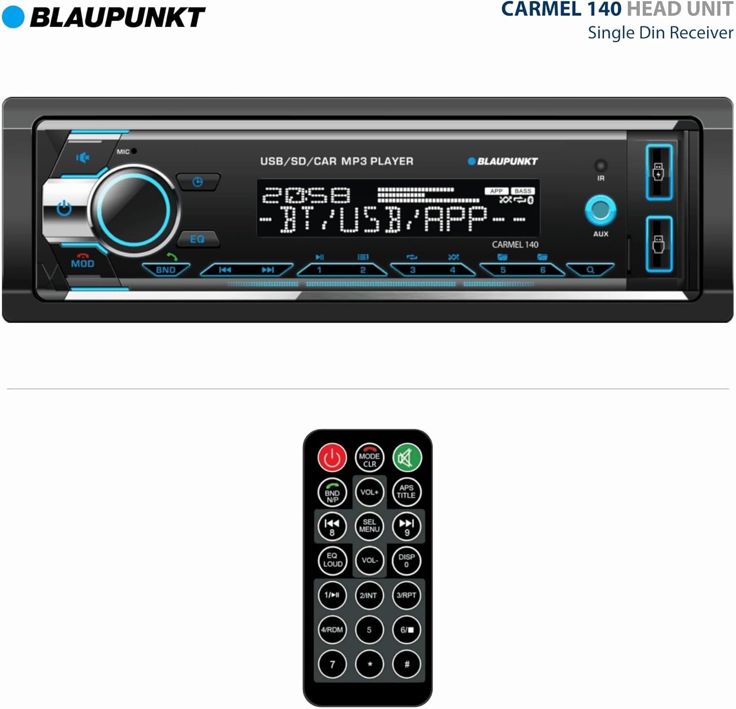 BLAUPUNKT Multimedia Car Stereo 1-DIN LCD Bluetooth Streaming MP3/2USB/Aux AM/FM