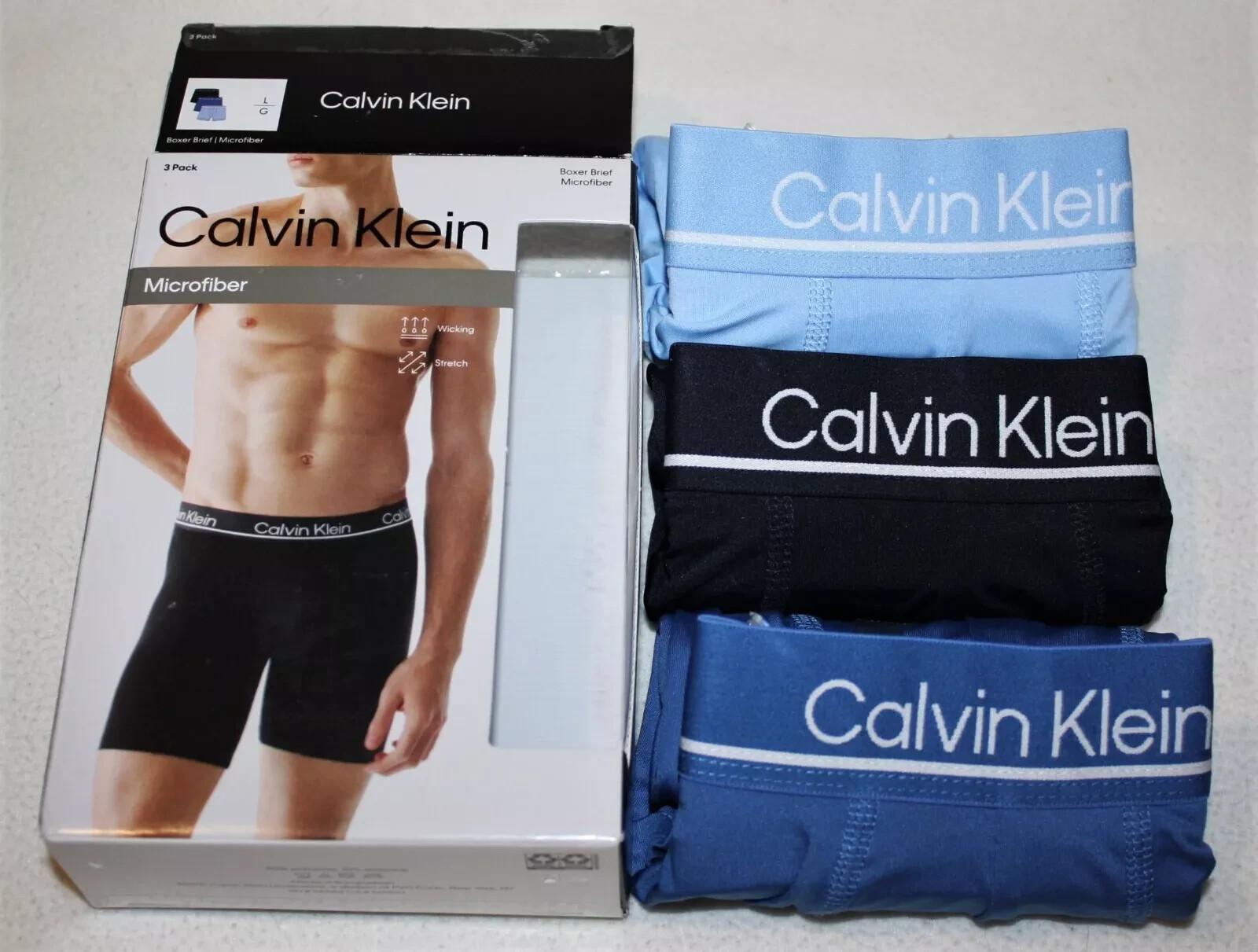 3 Calvin Klein Boxer Briefs M L Microfiber Stretch Blue Navy Underwear $47