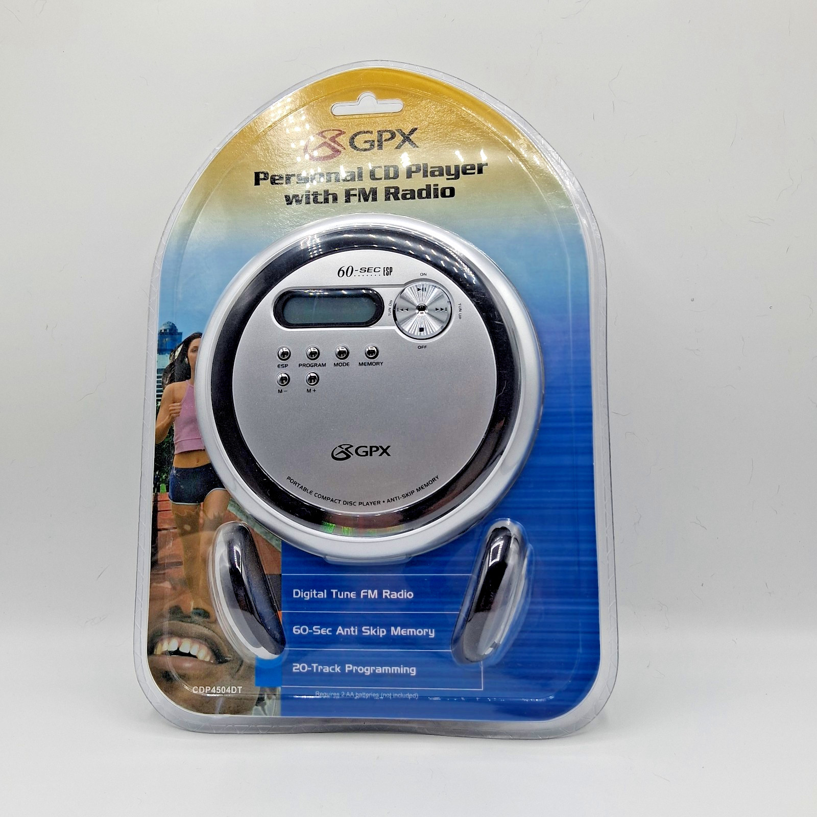 GPX Compact Disc Player. Portable CD Player CDP4504DT N 60 Second ESP . FM Radio. This has never been out of the package. Still has factory sealing.