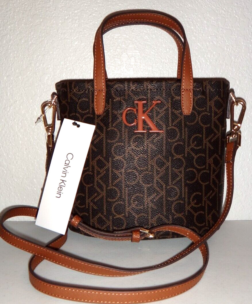 CALVIN KLEIN CK Signature Hand Bag Zip Purse Brown Luggage H1GEJED3 + GIFT BOX