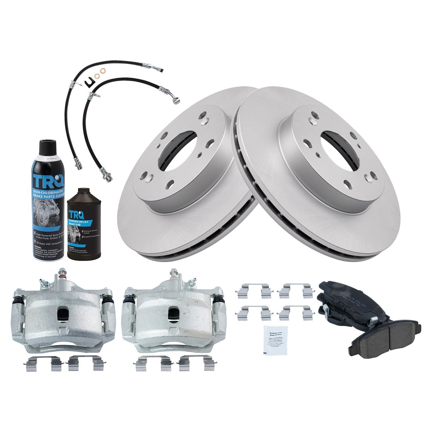 Performance Ceramic Front Brake Kit with Calipers and Hoses (BKA72156) by TRQ®. Whether on the street or the track, the TRQ performance ceramic brake kit with calipers will increase your ride’s stopping power and let you enjoy shorter stopping distances, providing smooth and quiet braking. Designed to beat the competition, each component of this state-of-the-art kit is manufactured to strict quality standards using cutting-edge technologies and materials to guarantee it will perform at its peak and ensure rock-solid dependability in hard braking conditions.