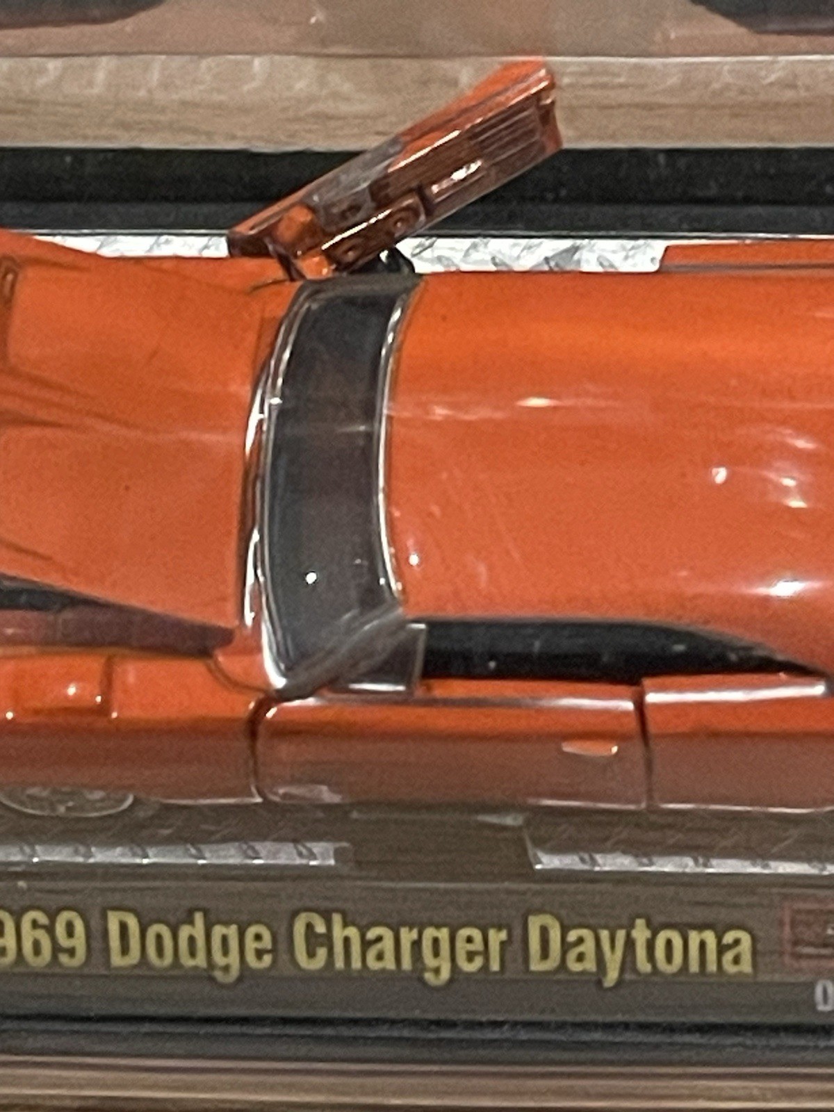 The M2 Detroit-Muscle Orange Dodge Charger Daytona in 1/64 scale is a brand new diecast car model by M2 Machines sealed in blister pack. This officially licensed replica features a vibrant orange color with its detailed design and high-quality materials, this collectible item is perfect for car enthusiasts and collectors.