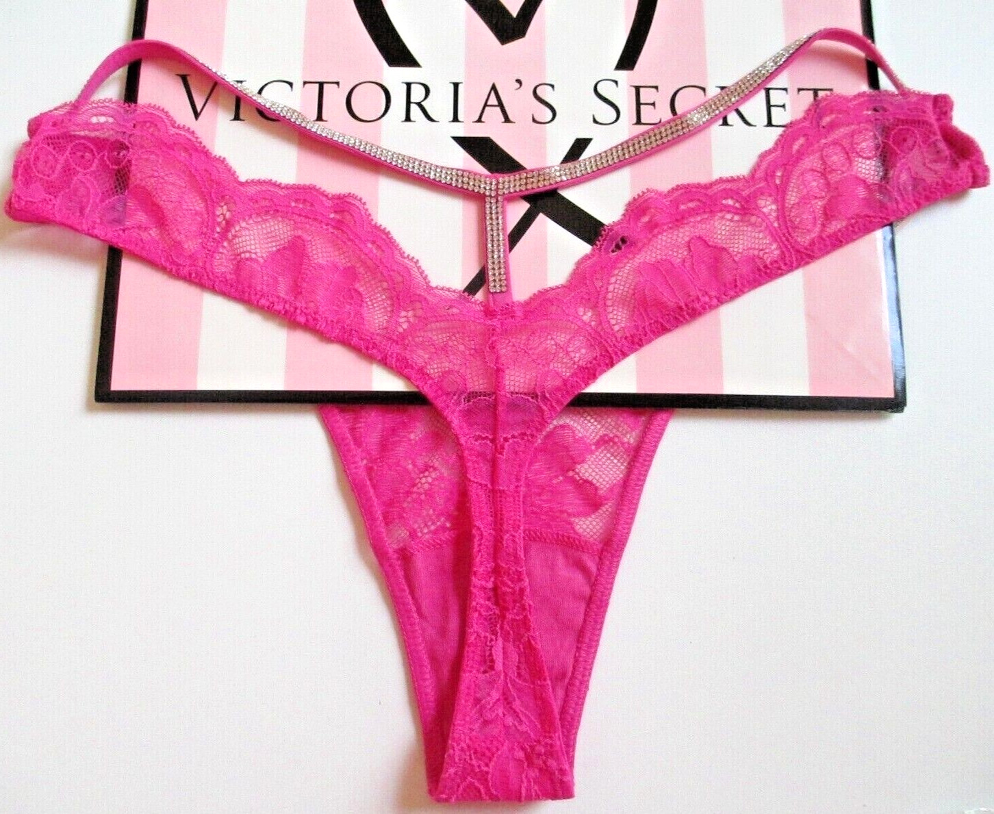 VICTORIA'S SECRET VERY SEXY Shine Strap Thong Panty VS Pink Lace T-Back L LARGE