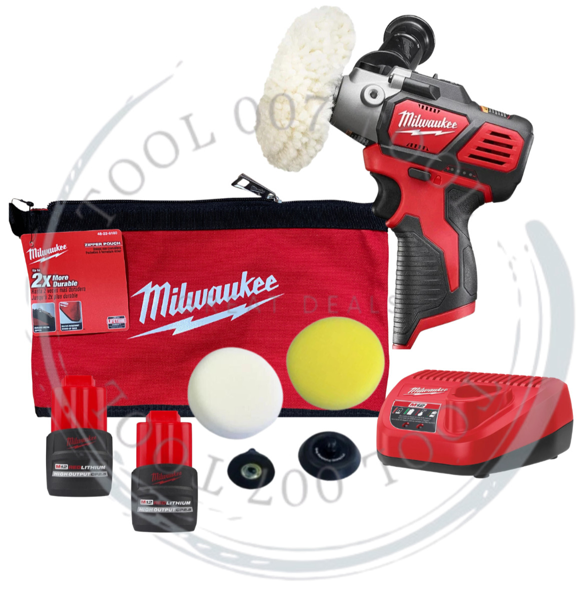 (2) M12 Milwaukee 12 Volt 2.5 Ah CP Batteries (48-11-2425). 2438-20 M12 12V Variable Speed Polisher/Sander and. (1) M12 Variable Speed Polisher/Sander (Bare Tool) (2438-20). Battery M12 REDLITHIUM. (1) Milwaukee 48-22-8180 Security Zipper Pouch.